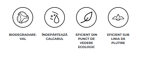 Acid lactic și citrat de sodiu – dizolvă calcarul și depunerile persistente.