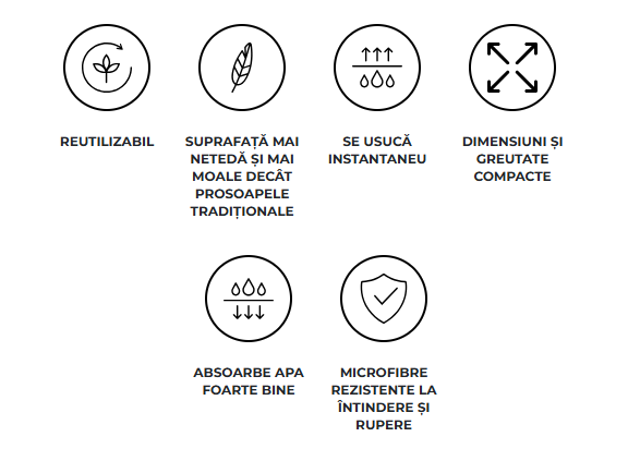 Uscare rapidă datorită microfibrei cu densitate ridicată.